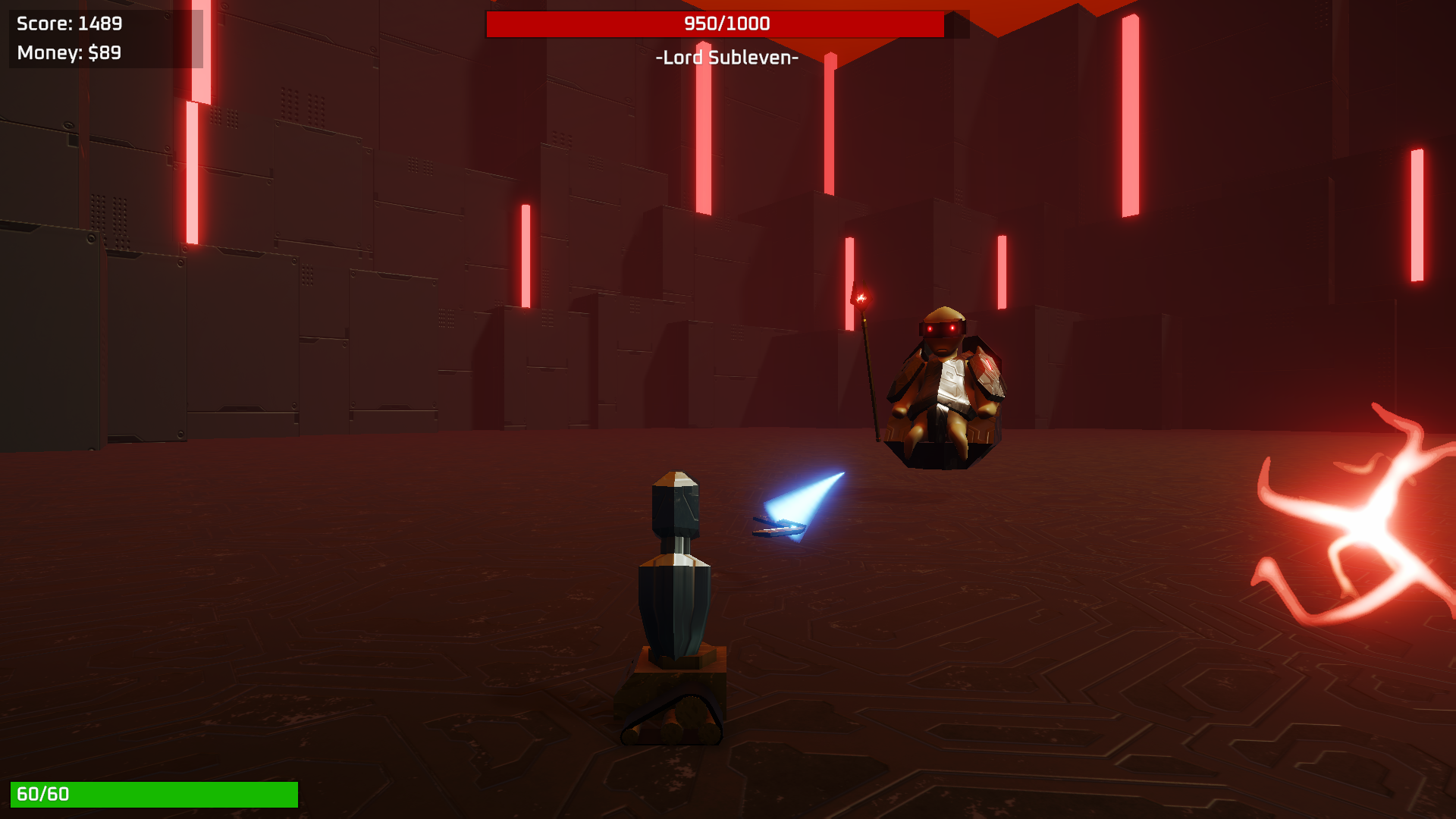 Score points by dealing damage to the boss. These points also work as currency, allowing you to buy new upgrades and abilities, making the fight less challenging. Lower scores are better, as it means you beat the boss sooner!